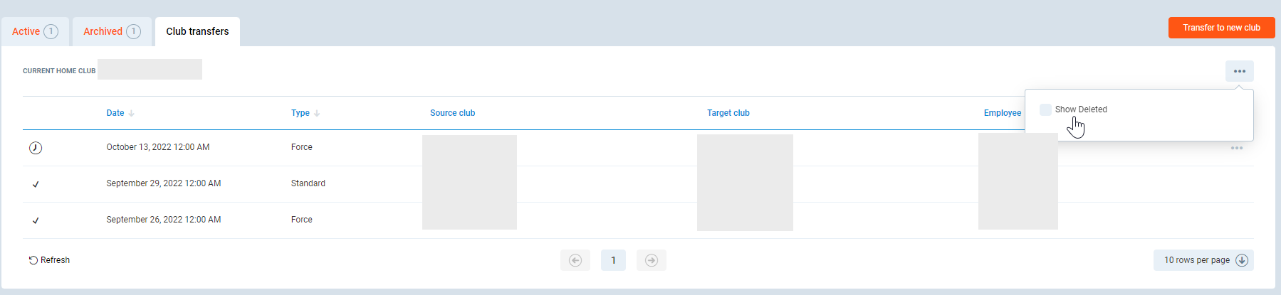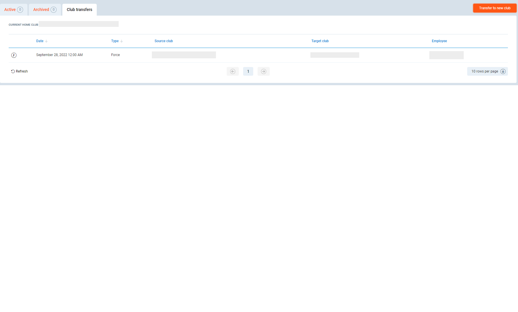 Transfer date - Select the transfer date for the club member to be transferred to a new club.