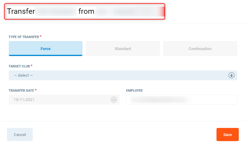 In case of Standard and Continuation transfer types, this date will be also the start of the new contract. Setting the transfer date for the current or past date will transfer the member immediately after creating the transfer order. If the transfer is set for another day, it will be scheduled and run according to Users.HomeClubTransfers.Task. See Hints for more information. It will be available from R88 system version.