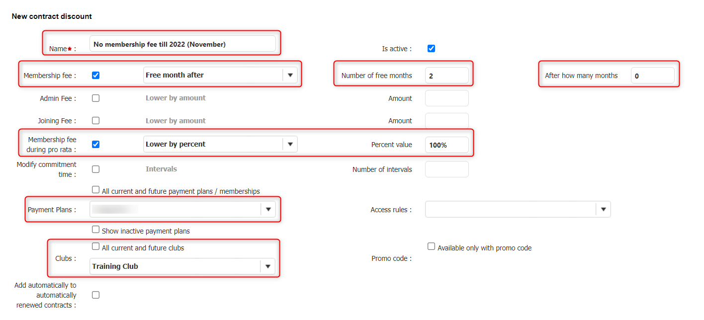 For payment plans with pro-rata, if you are running this promotion over a number of months, please be mindful when the change over of contract discounts start and finish. After the last direct debit run of the month, the period between the day after that direct debit to the first debit run on the next month is considered as a pro-rated payment. If you do not change the free months after, this may give the club member an additional month free.