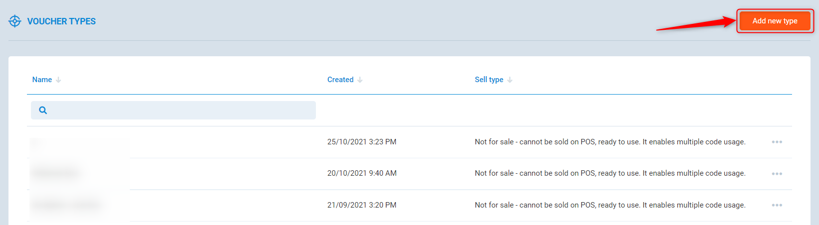Press Add new type to create a new voucher type.