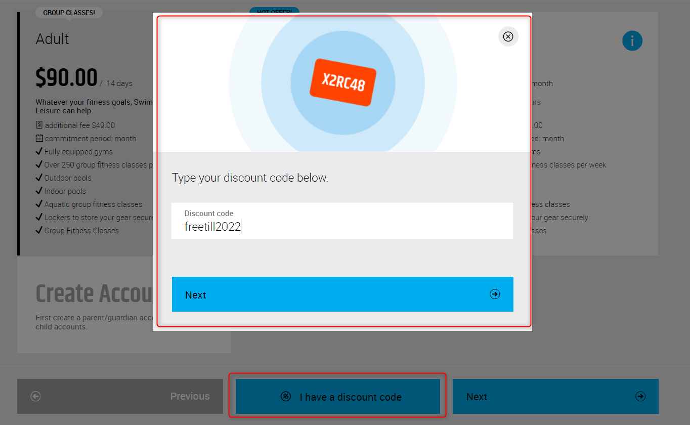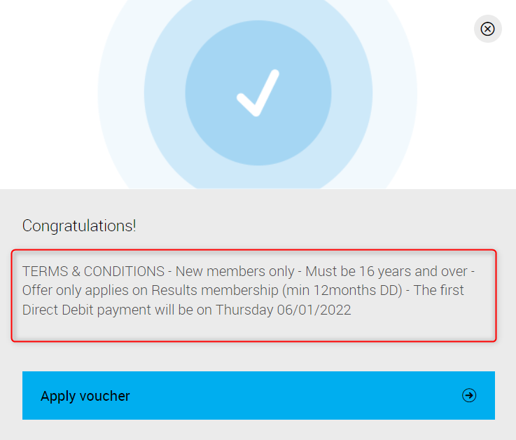 Club member presses I have a discount code which will produce a pop up, They can enter in the code here (this is not case sensitive).