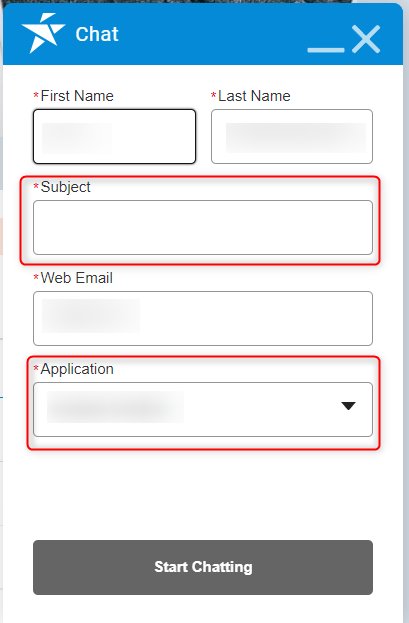 Chat box will proceed to open. Populate the required fields and click Start Chatting:
