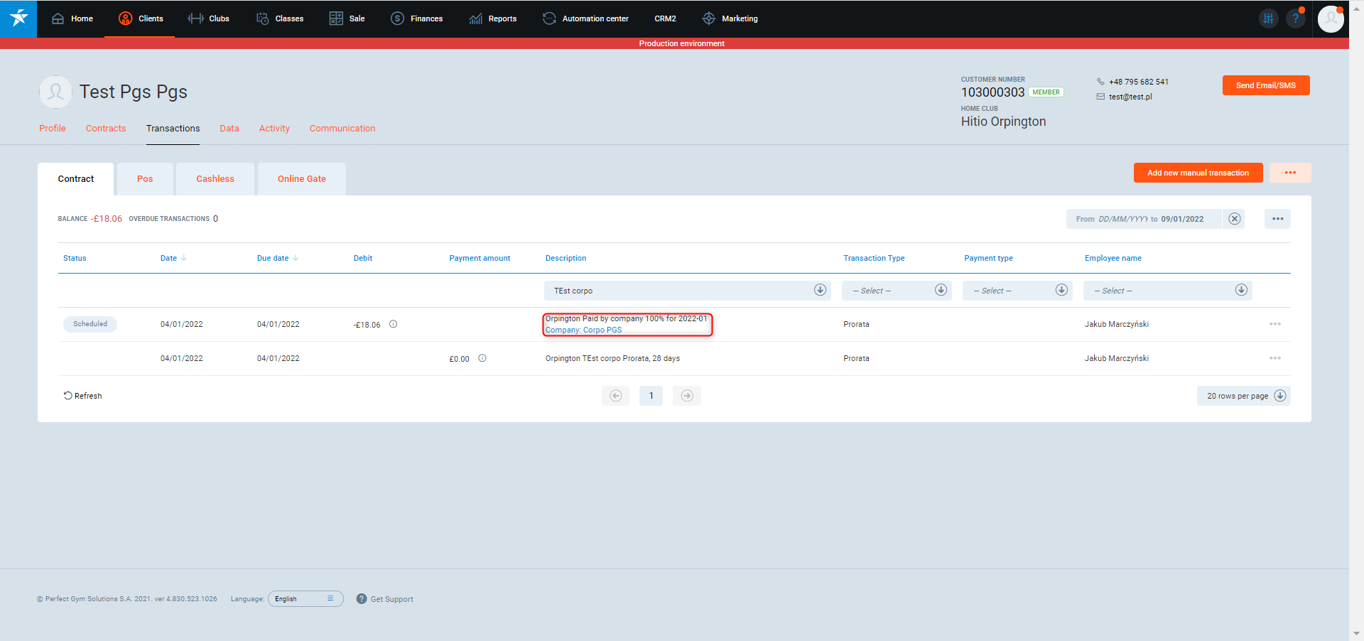 - Sprawdź czy kontrakt klubowicza został opłacony przez wybraną firmę - Kontrahenta.