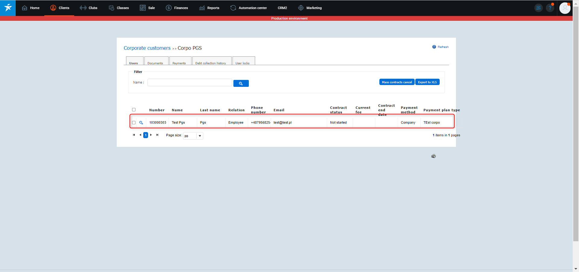 2. Sprawdź czy klubowicz przypisany został do stworzonej firmy - Kontrahenta.