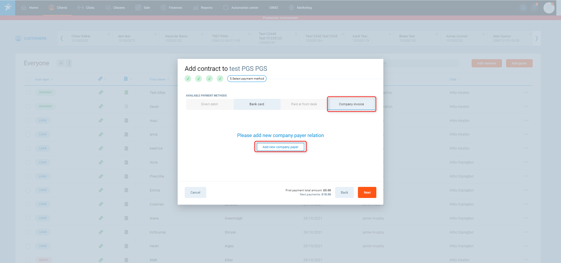 1. Podczas dodawania kontraktu do profilu klubowicza, w zakładce Metody płatności kliknij w Firma i wybierz tę firmę, która została dodana jako Kontrahent w KROKU 3 -> punkcie 3 powyżej.