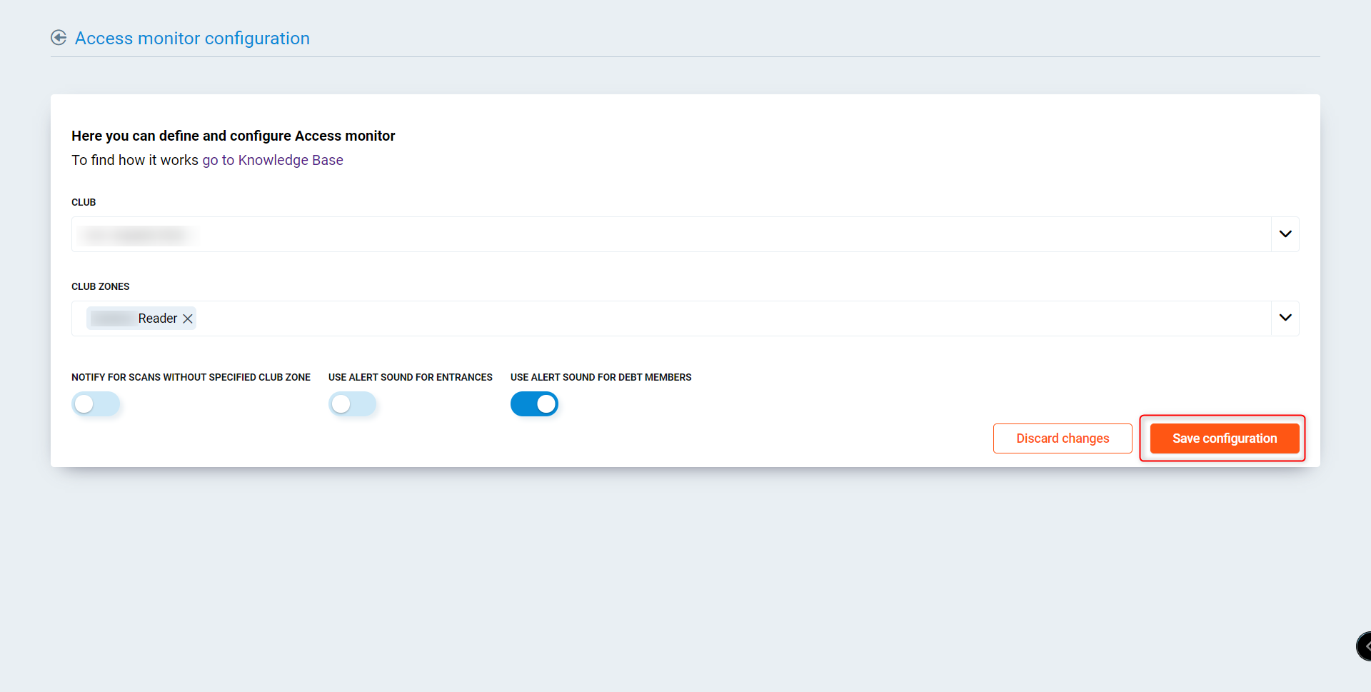 Club - Select single club to view the access monitor.
