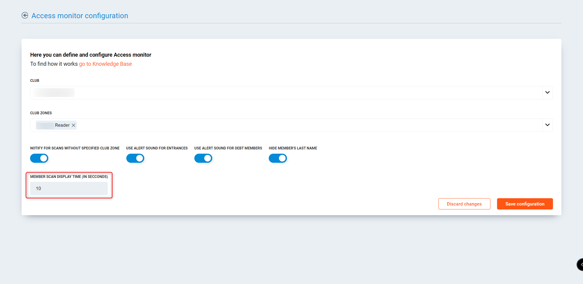 Member scan display time (in seconds) - Enter in a time in seconds for how long the club member will be visible on screen.