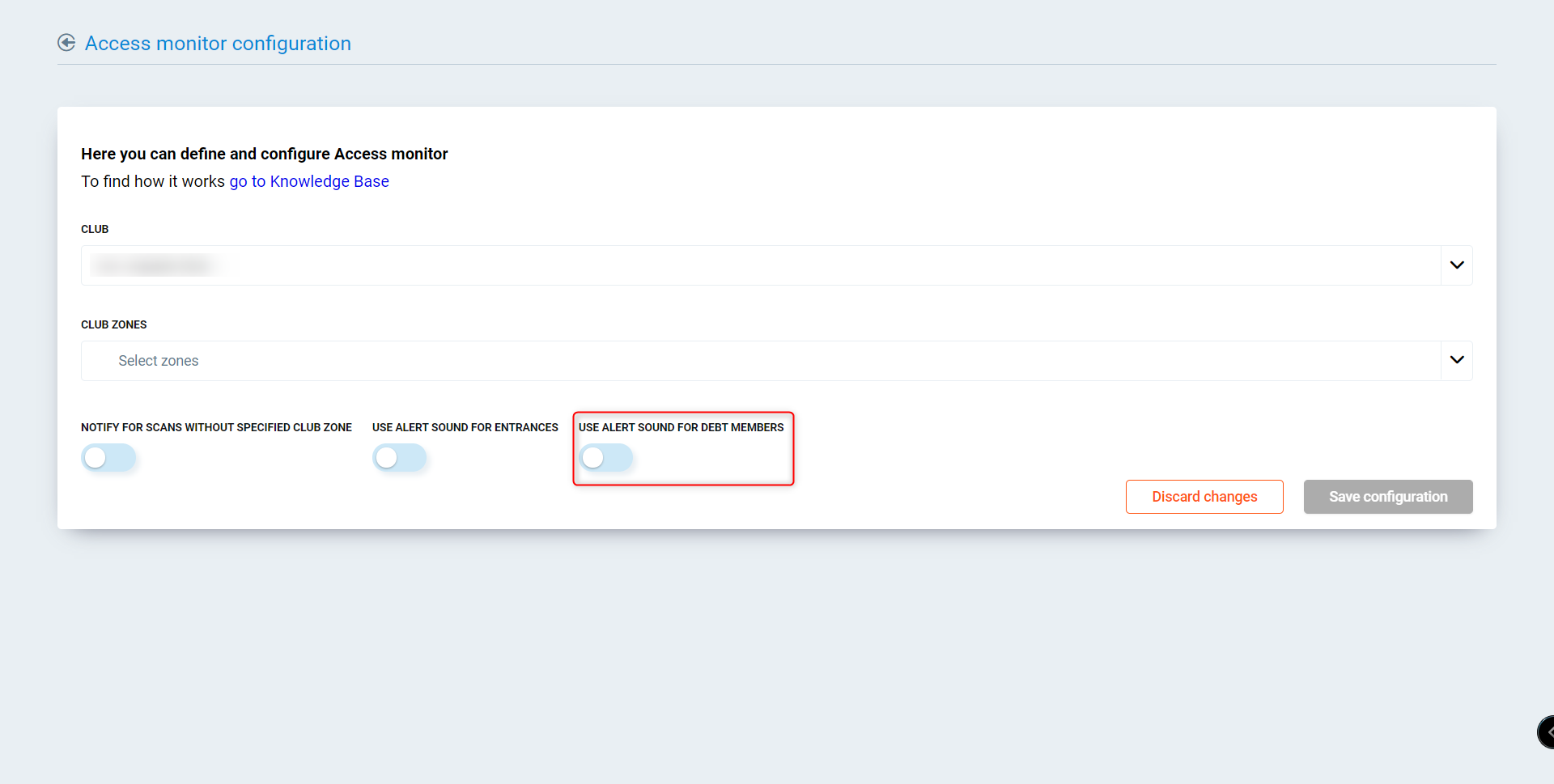 Club zones - Select one or multiple zones to monitor. The zones listed here are from the club selected in the club field.