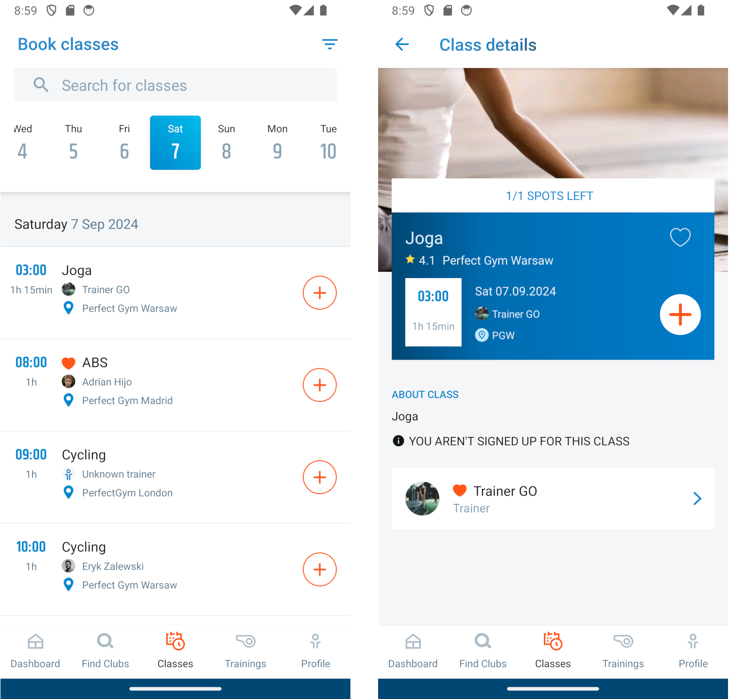 On classes list and class details screens classes related data are refreshed