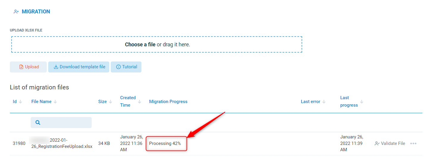On the left toolbar, select Migration. This is the area you upload the registration fees to.