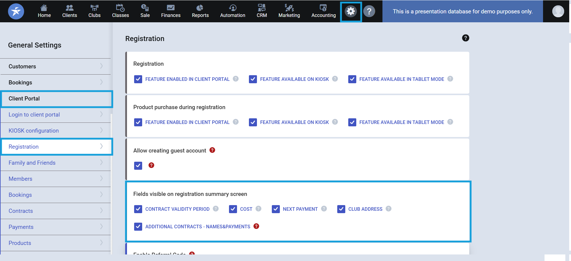 This article shows how to set up the Registration Summary page in the Client Portal. You will see, which information can be displayed on this page to the Club Members and which can be disclosed.