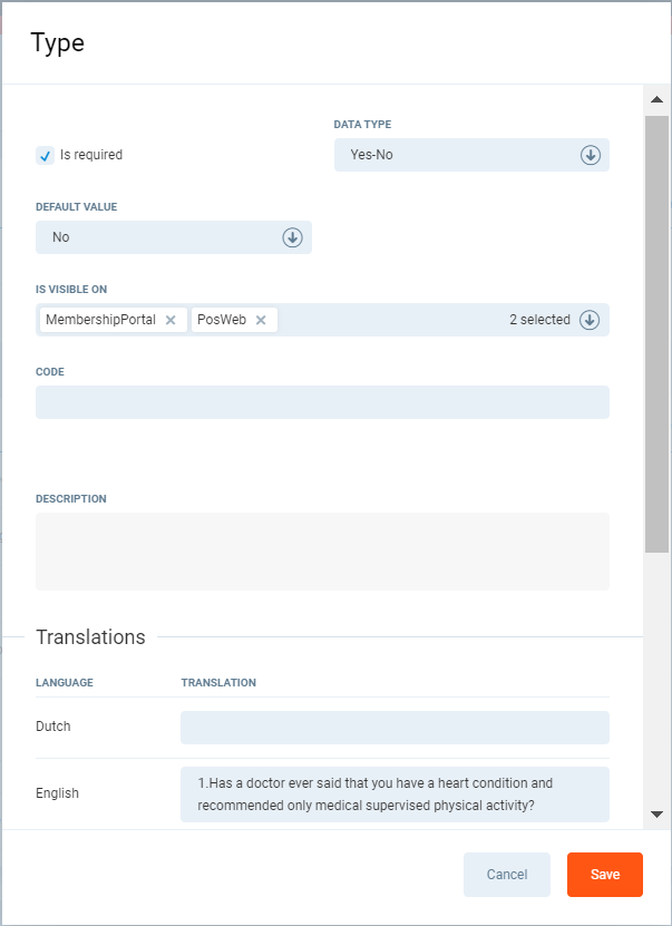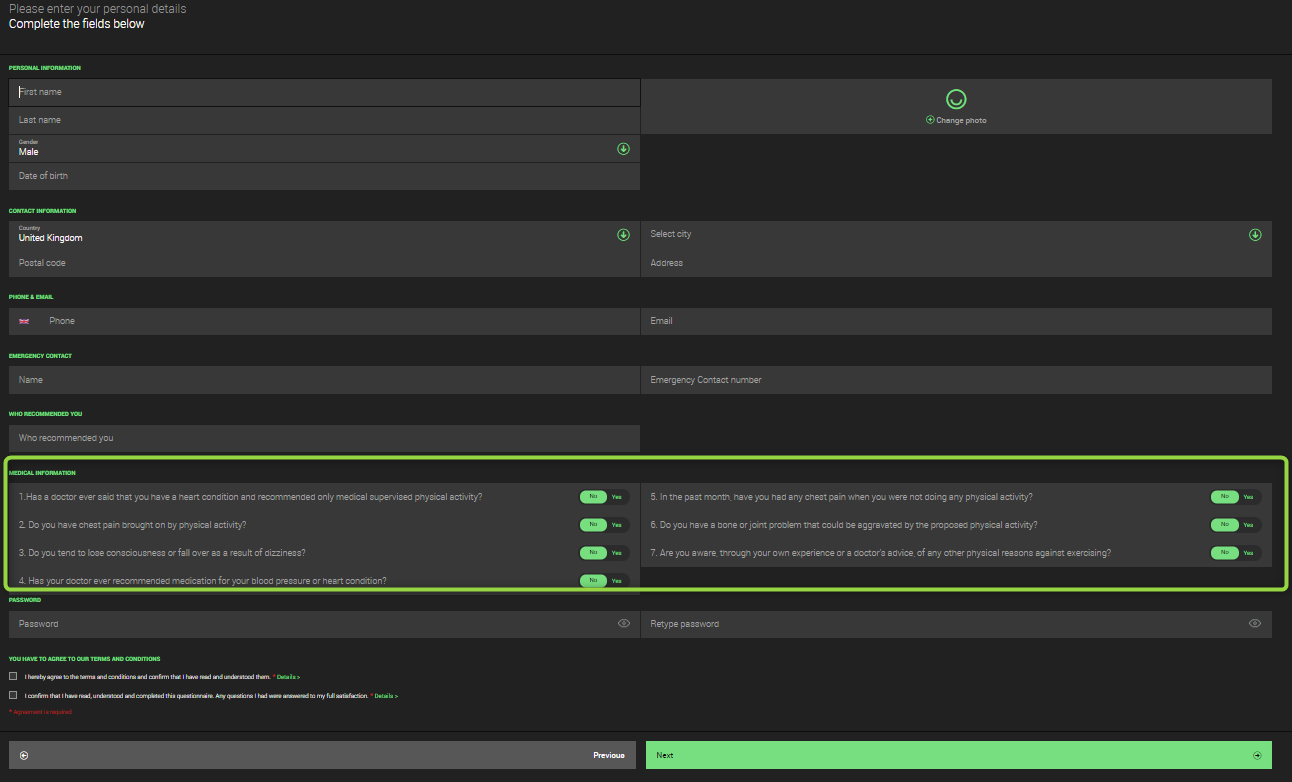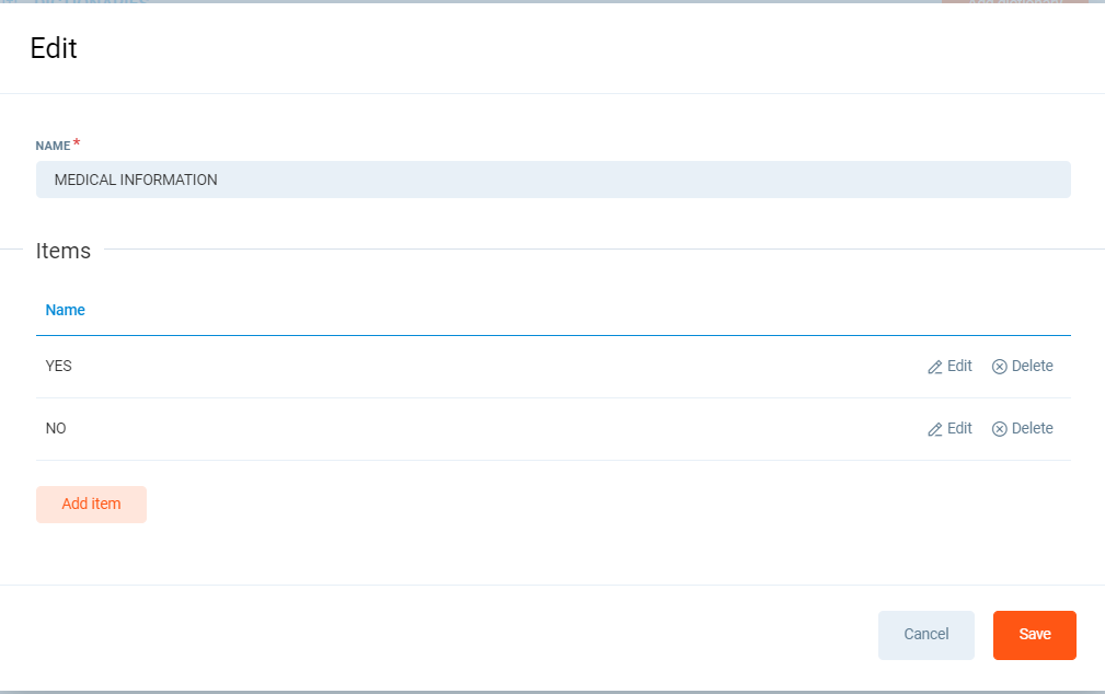 If you want to add an additional field to your Client Portal, i.e. Medical Information, first you need to add the option field TRUE or NO that members can choose in the specific field of medical questionnaires.