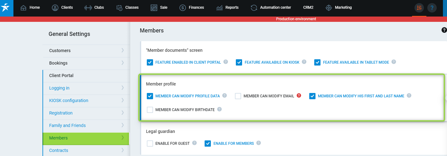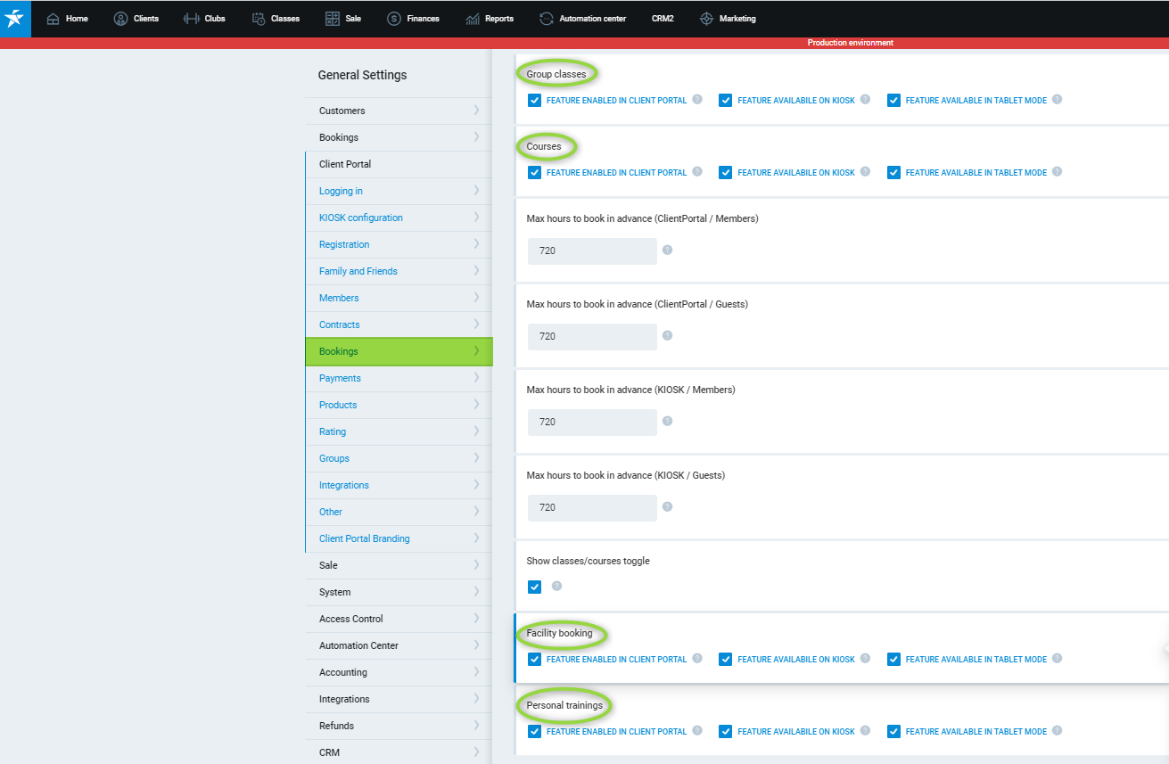- This article shows all available settings you can use to enable the given functions to your club members on the Client Portal.