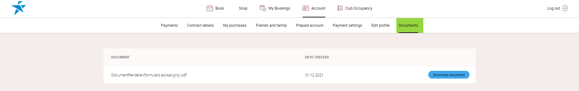 - Documents - under this tab, the club members will be able to see: the Contract agreement, the Terms and conditions of your club, and every document that you have uploaded by the PGM system into their account.