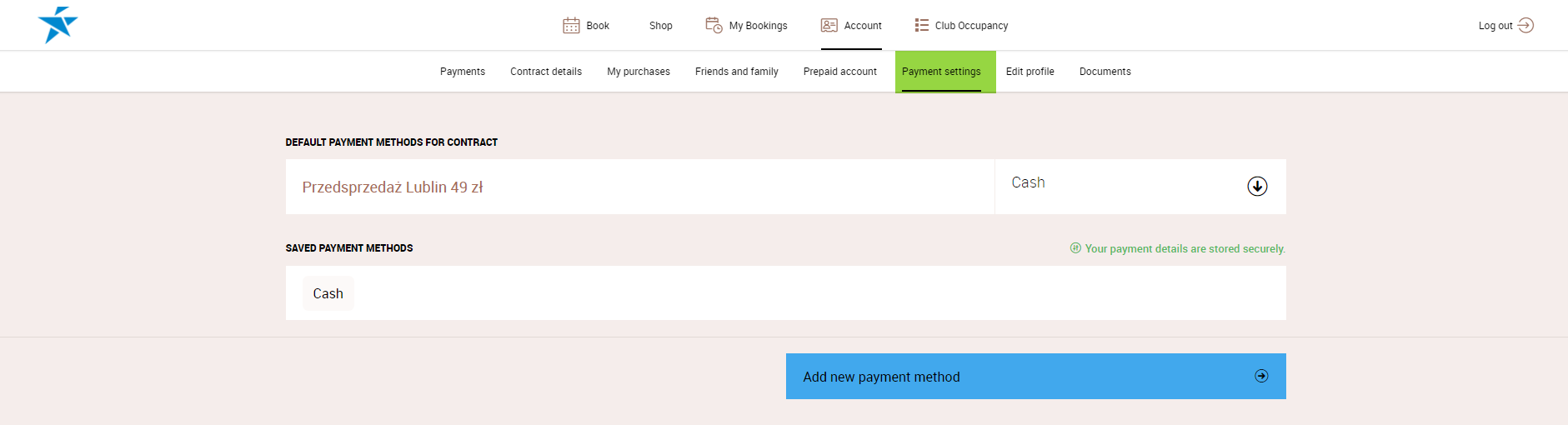 - Payment Settings - under this tab, the club members will be able to modify and add a new payment method