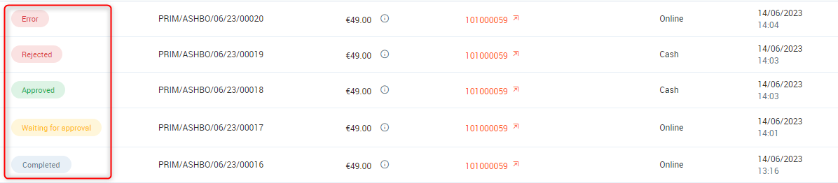 Each Refund Request has the Status marked in colour, in the first left-side column.