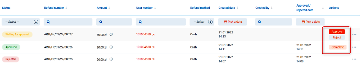 - Reject - if you click it, it would mean that the Refund Request has errors and cannot be approved. A person who made the Refund Request has to correct it and repeat the process.
