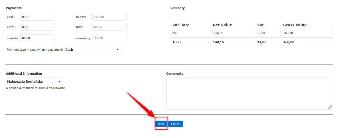 After the payment is received, remember to mark it as paid. The manual transactions will be added to corporate customers.