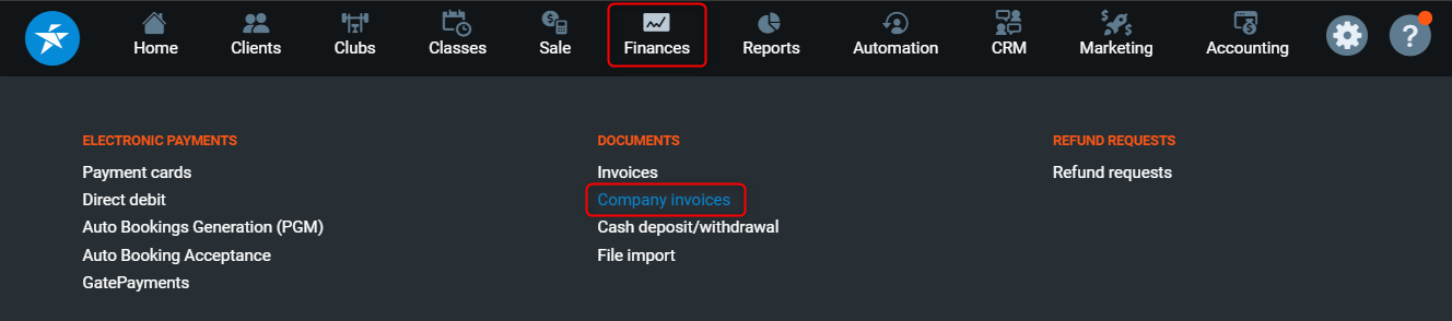 1. Go to PGM -> Finances -> Company invoices