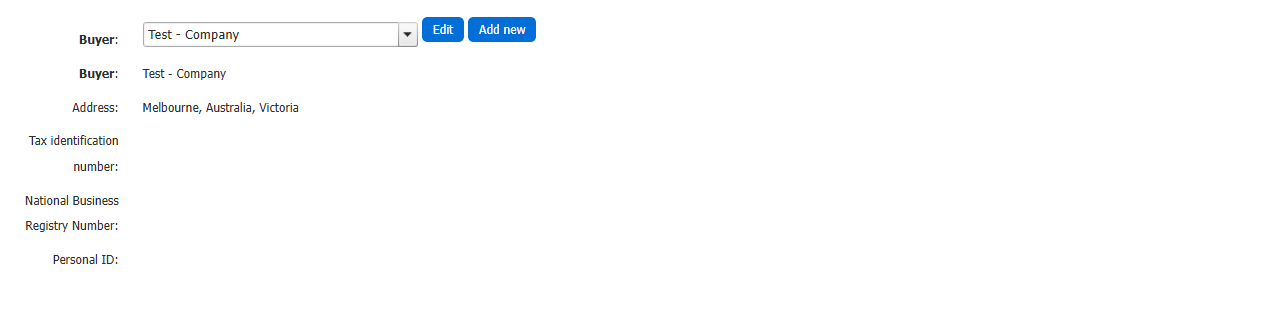 IsTaxIdentificationNumberRequiredsetting is on, you cannot save a company invoice or credit note without a Tax identification number for the buyer.