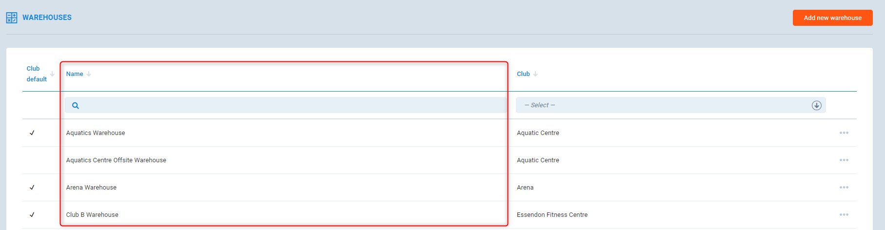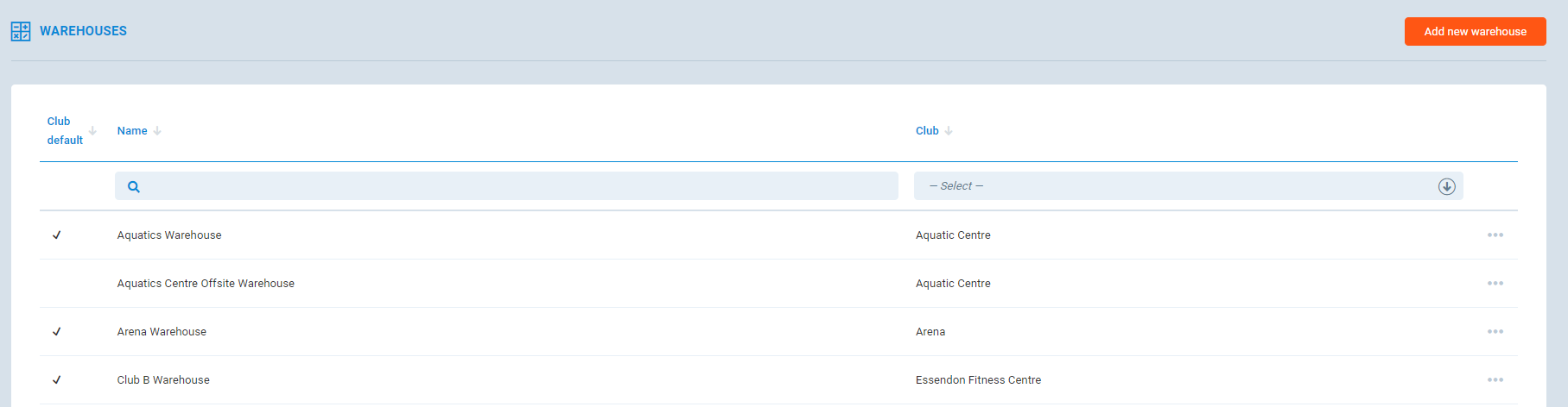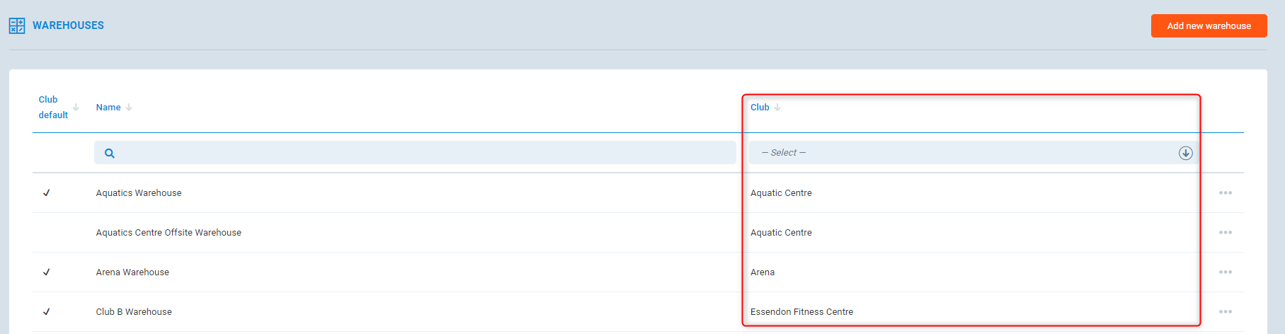 When a club is set up, a warehouse location will automatically be added when the club is created.