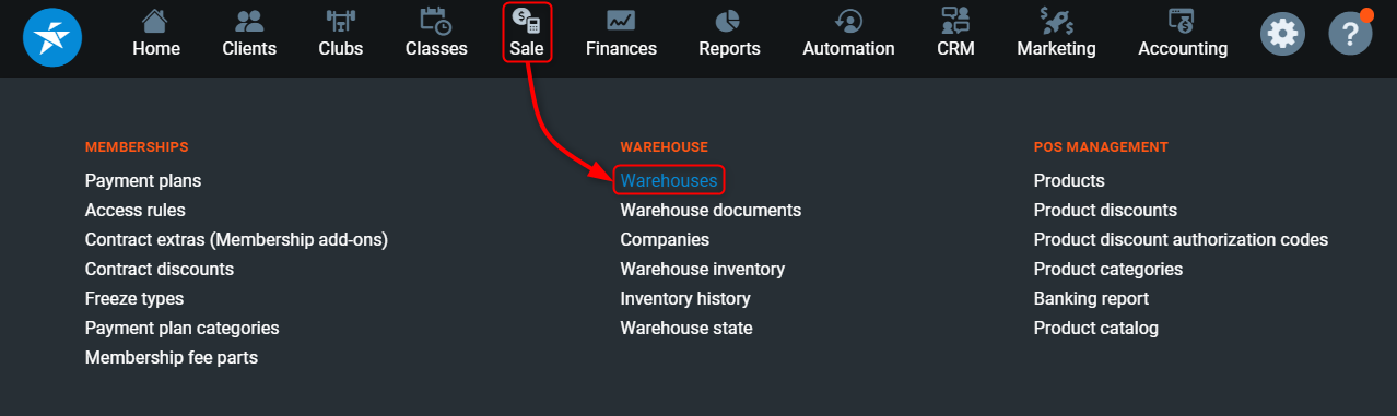 This article will display the features of the Warehouses module. This is used to manage product state in your club via PGM.