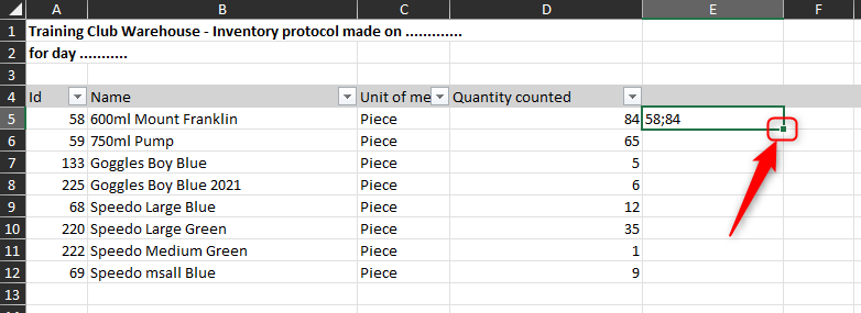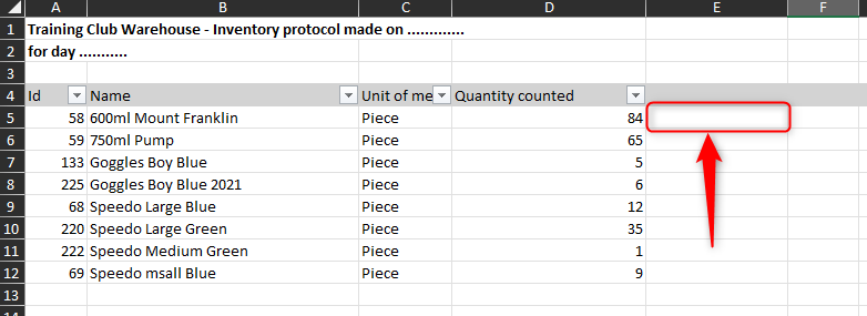 Discrepancy Highlighting: Any row where the "Real Quantity" (your count) is different from the "Quantity On Inventory" (the system's value before the count) will be colored red. This is normal during a stock take and helps you see what is being adjusted.