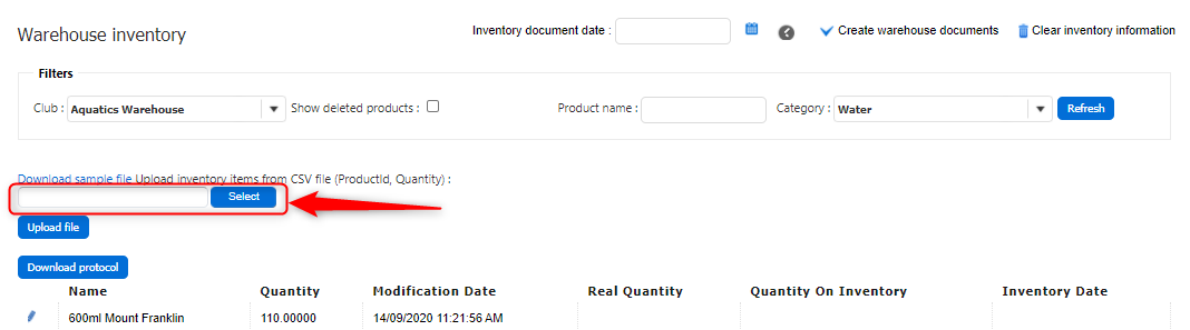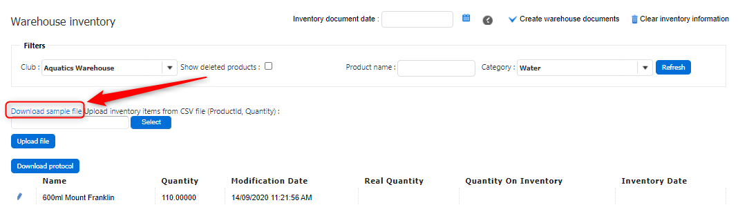 First, prepare your inventory file. You can click Download sample file to get a template.