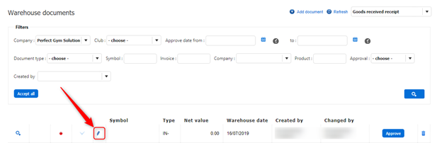 To add, edit, view or delete warehouse documents you need to add appropriate permissions. Go to PGM -> Clubs -> System Permissions.
