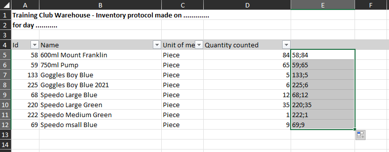Goal: Get an official Excel record of the inventory count before generating the final documents.