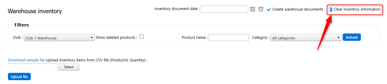 Clubsdropdown (in the advanced panel). Click the Upload Inventory Advanced button.