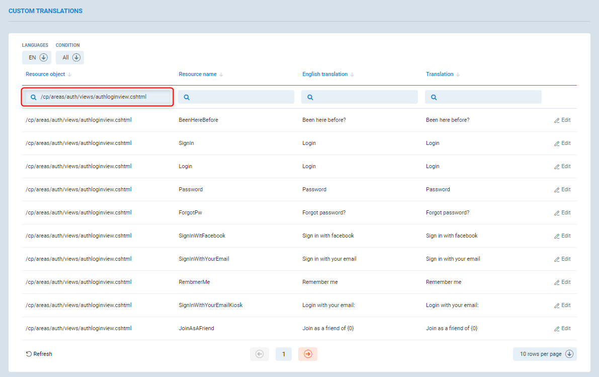 - Search for all translations on this section using the Resource object - /cp/areas/auth/views/authloginview.cshtml.