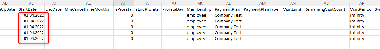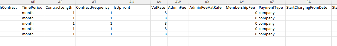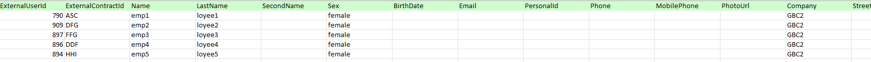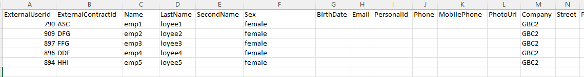 - externaluserid and externalcontractid - these are are random values, but necessary to be in place for the file to be correctly working.