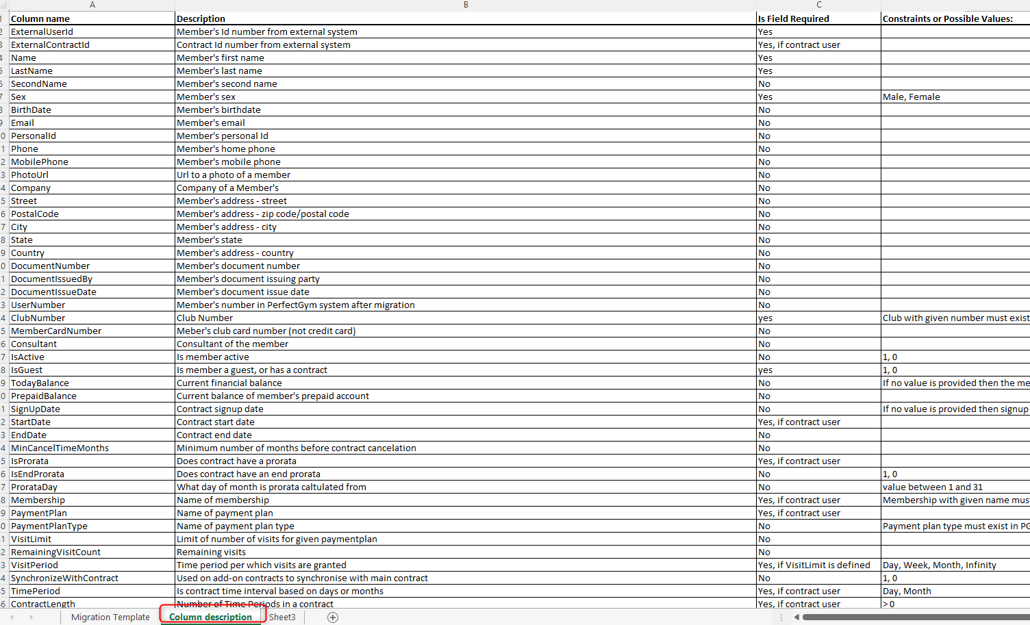 4. Fill in the document with the data and make sure you follow the rules indicated in the column description in the second sheet of the document.