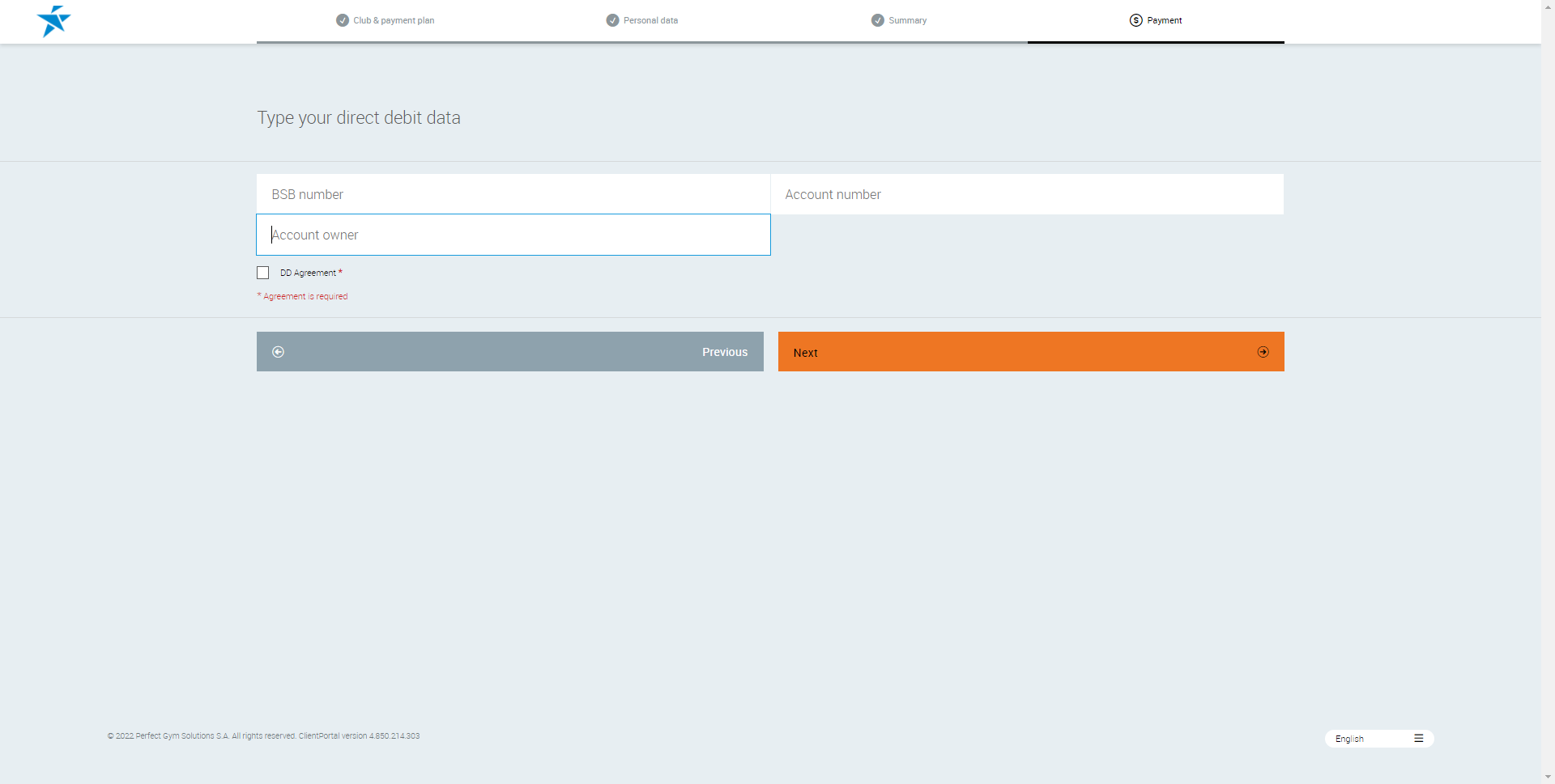 - After agreeing to the contract, it is now time to enter in the payment details for the club member.