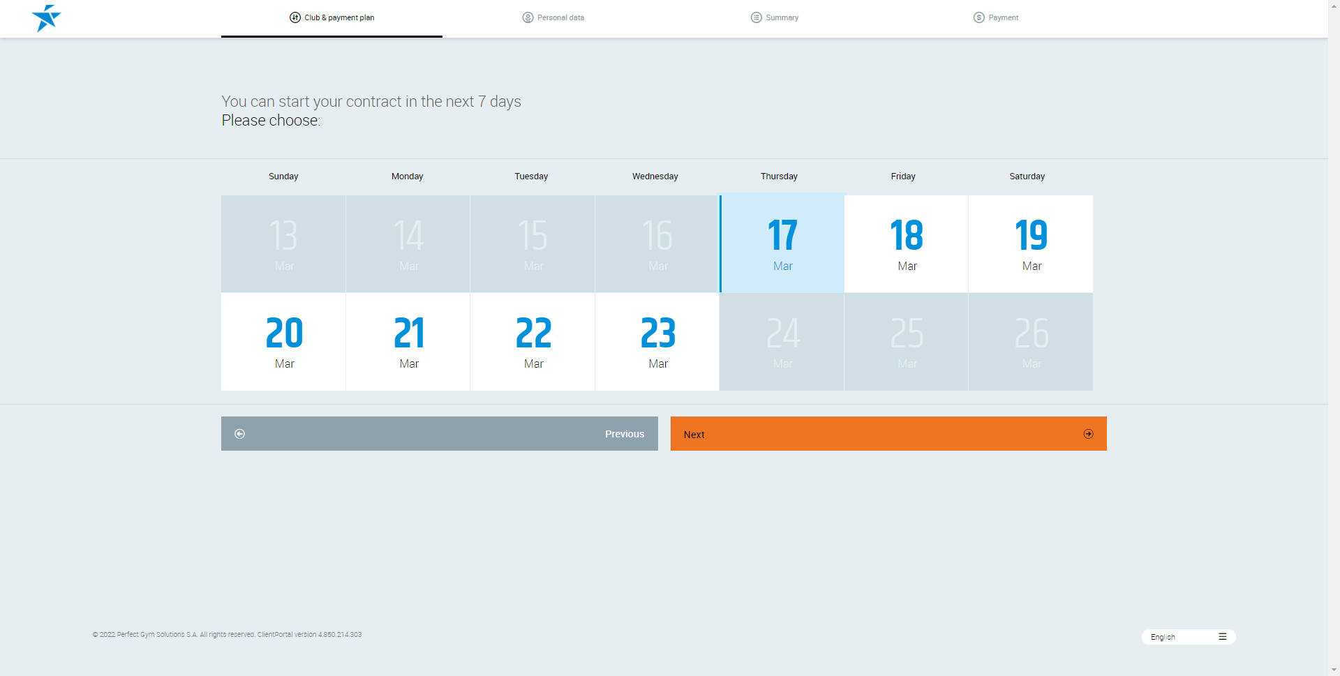 - If the club does not allow the club member to choose a start date (where the sign up date is the start date) this screen will be missed.