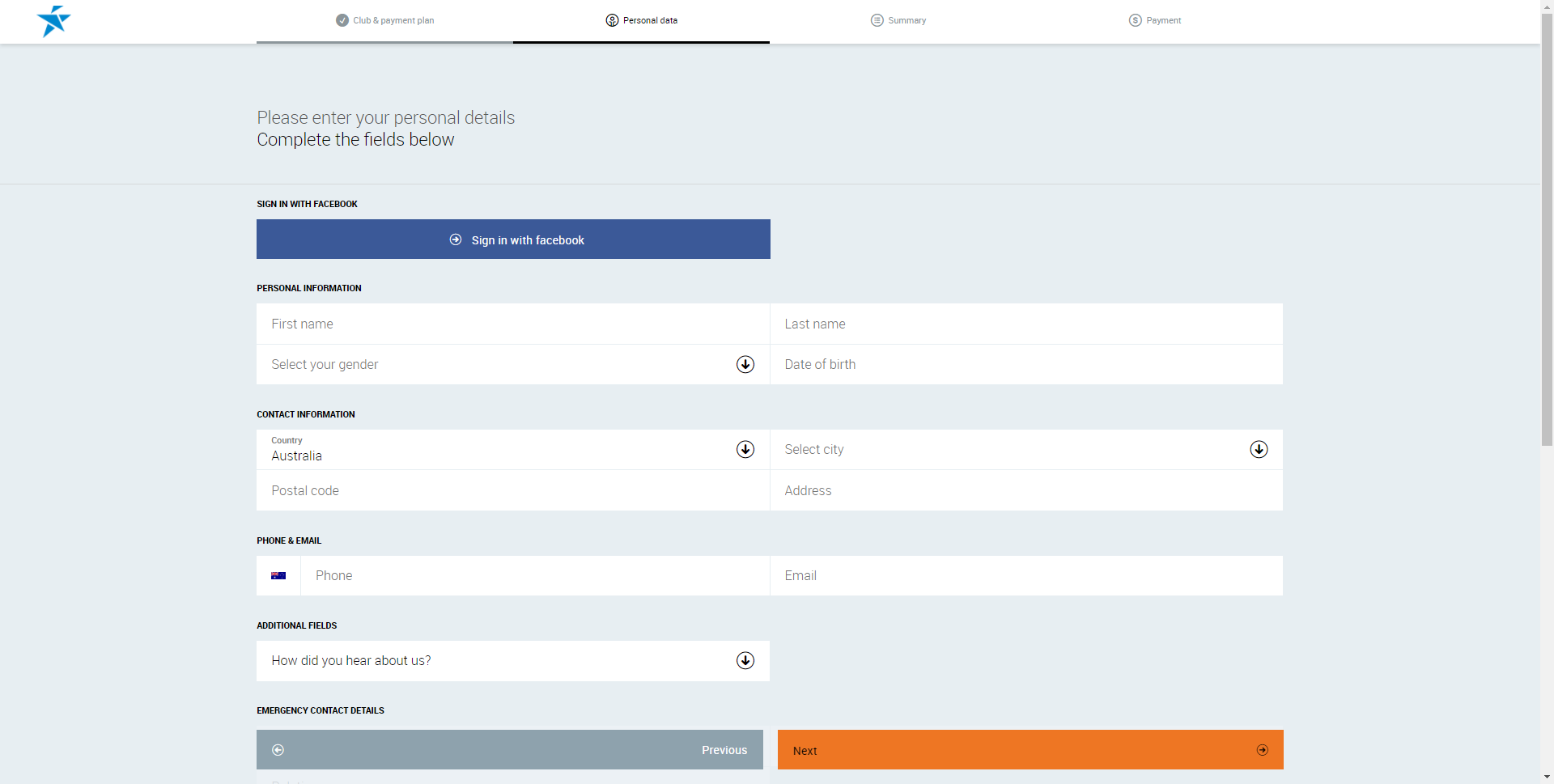 - This screen allows the club member to enter in their personal details.
