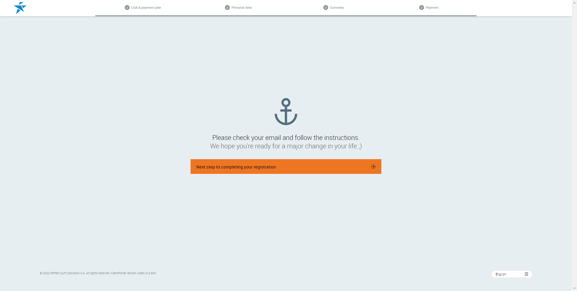 Registration completion page