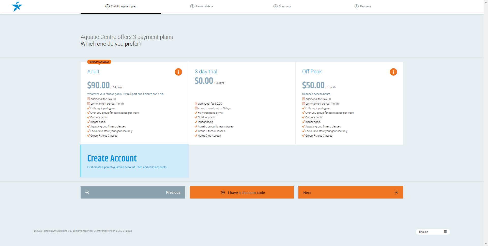 - The next step of the registration process is selecting the main payment plan.