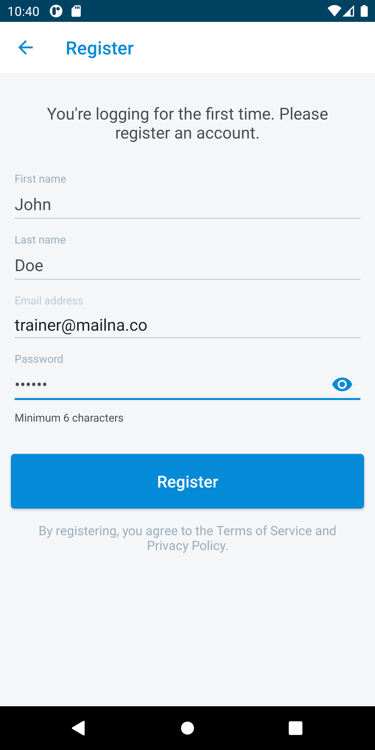 3. Enter your First name, Last name and create the Password.
