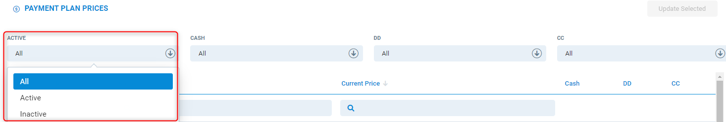 Using the filters, find the payment plans you wish to raise the price of the membership fee.