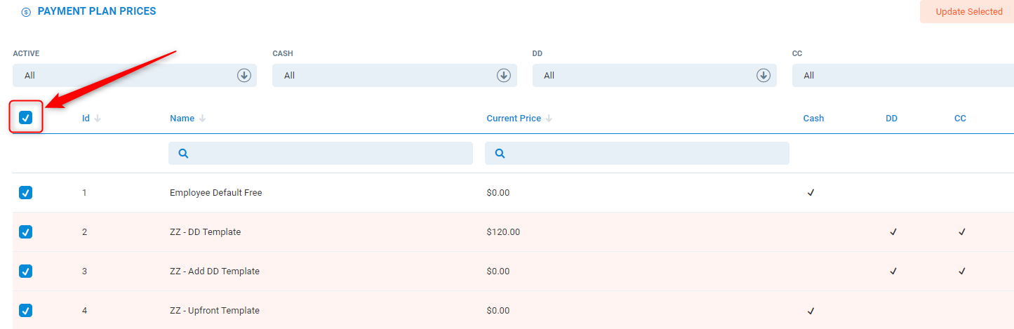 Note: Using the bulk price increase function is effective if you are increasing a number of payment plans by the same price/percentage