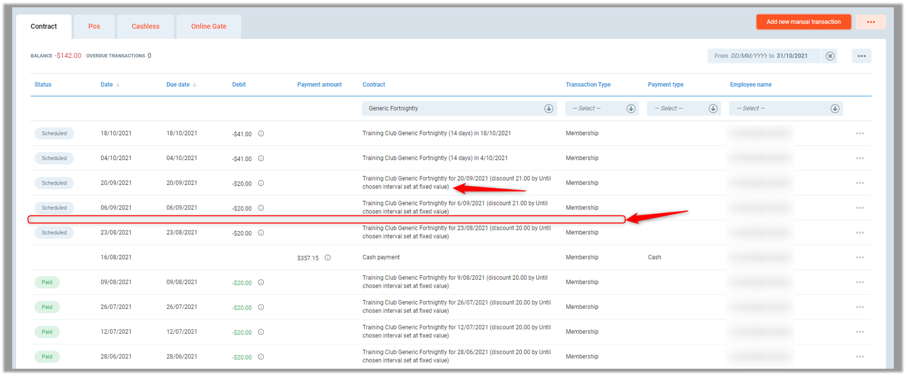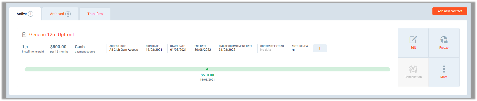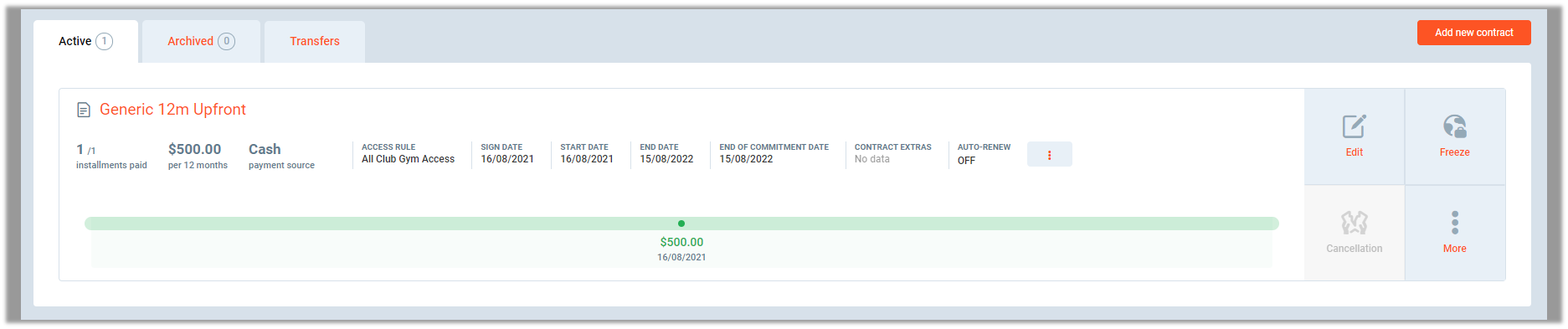 Note: If a member signs up to a contract before the price increase for that payment plan has been implemented on PerfectGym, for a start date after the price rise is supposed to start. Their contract will be recalculated and show debt/credit as there will be a variance to what they paid to the new contract price.