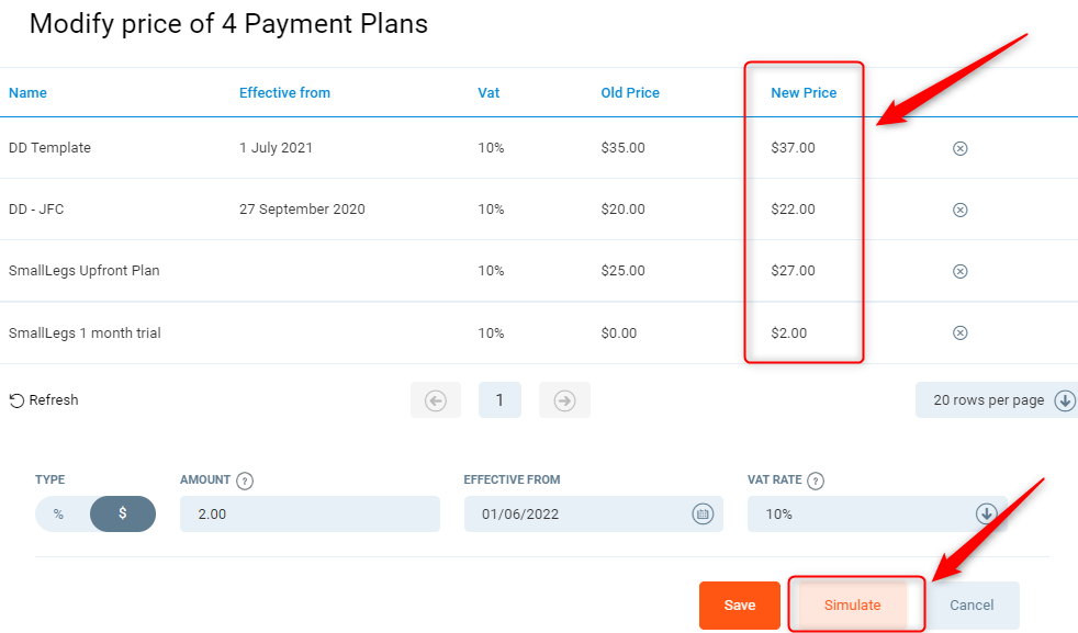 Once entered in, press Simulate to preview the new price. This will appear in the New Price column.