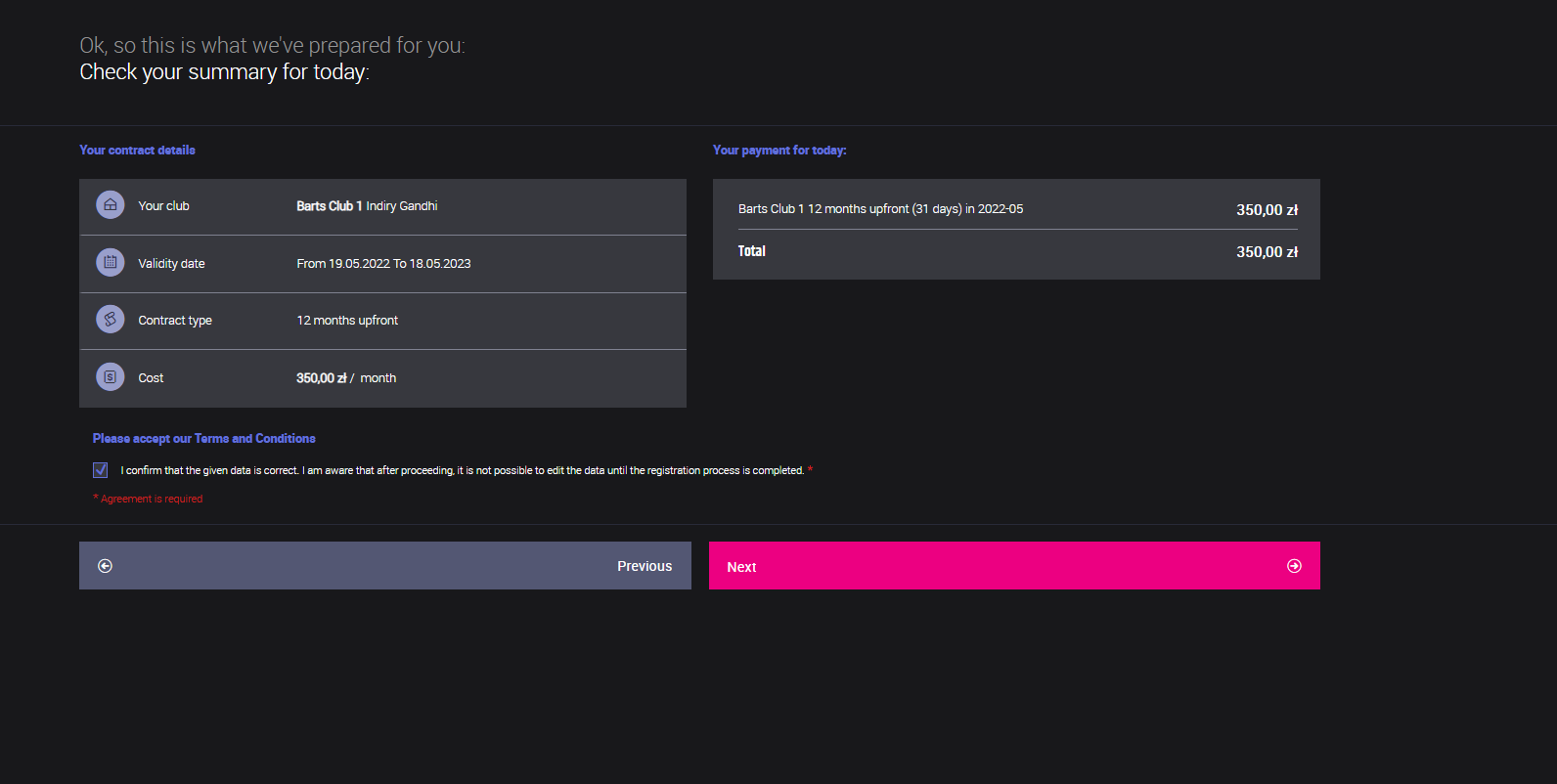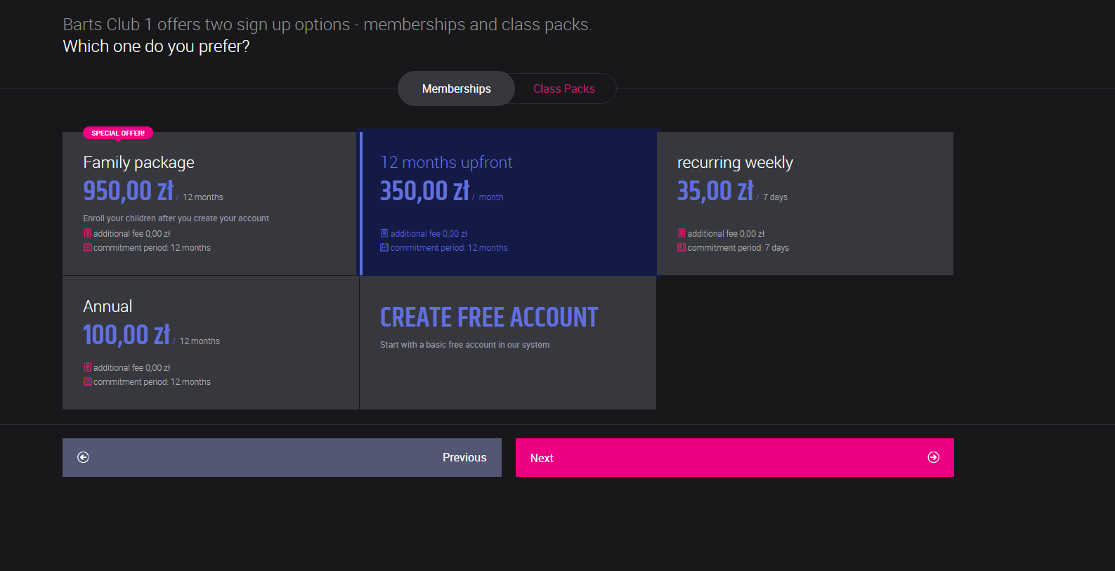 - Choose Packet membership, in this scenario it's the Family package contract.