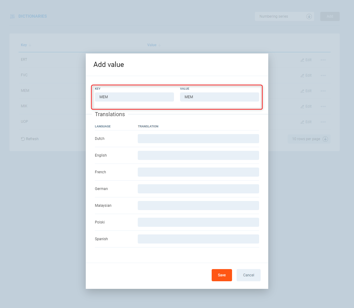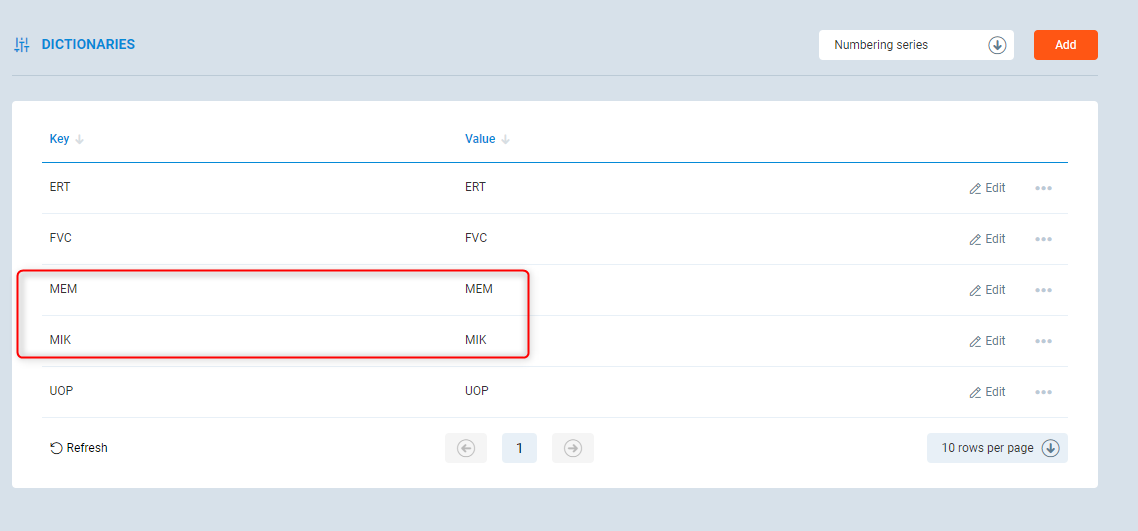 In this case, two new Dictionary values MIK, MEM were created.