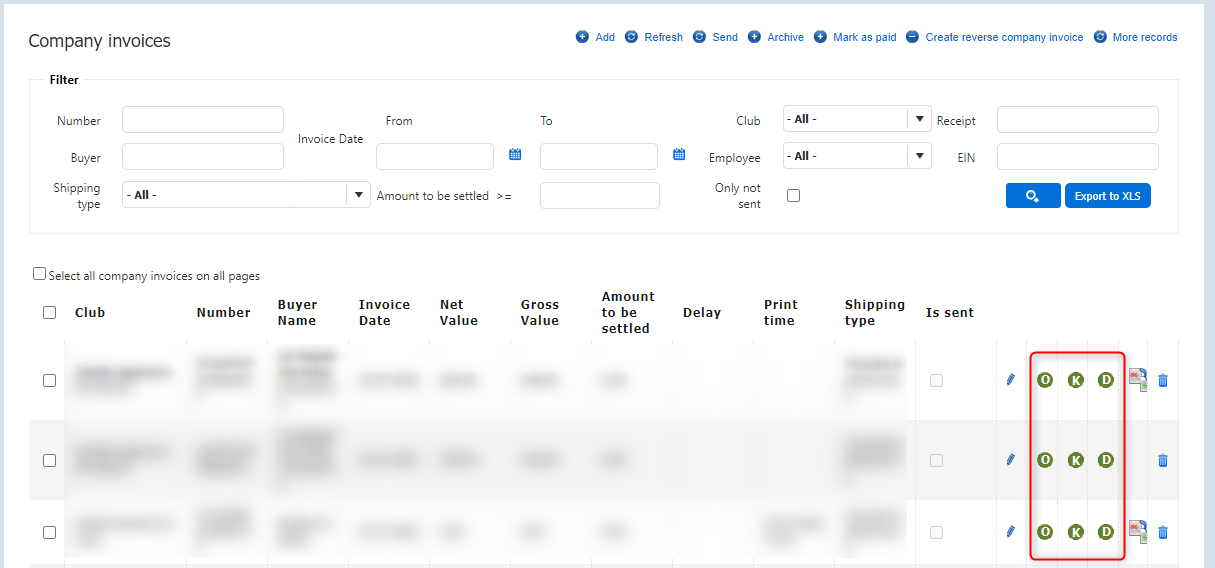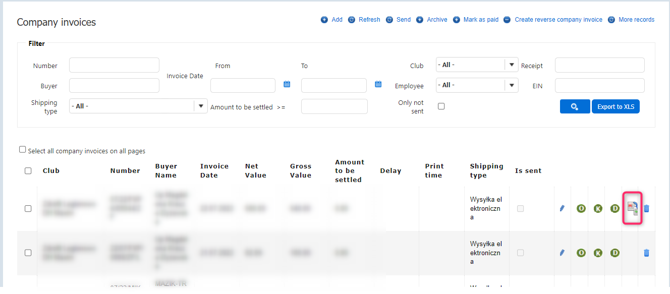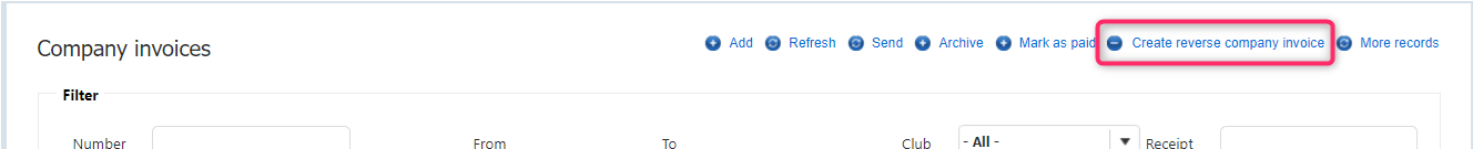 - Select invoice(s) to be processed and click on the button named - Create reverse company invoice.