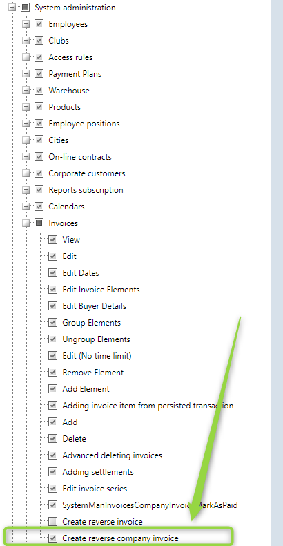 To access the feature creating a company reverse invoice you will need to have an access to the following system permissions: