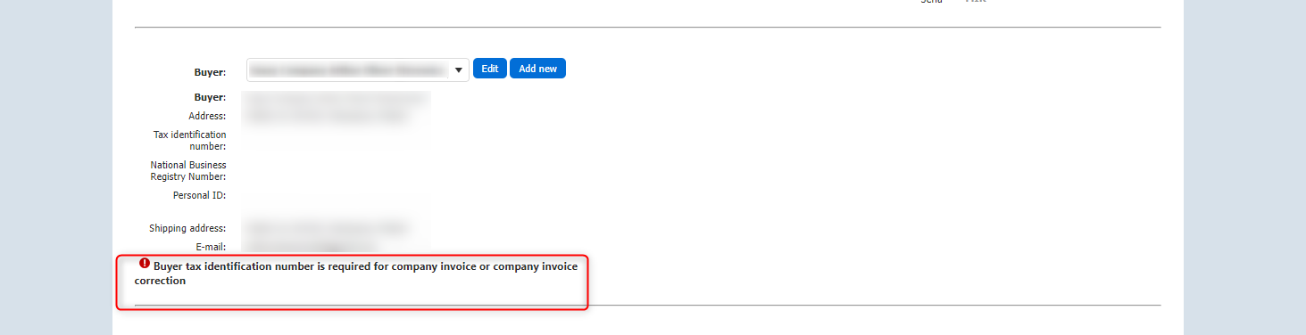 - Most of data should be set from previous company invoice but there is possibility that existing buyer does not have defined Taxt Identyfication Number.