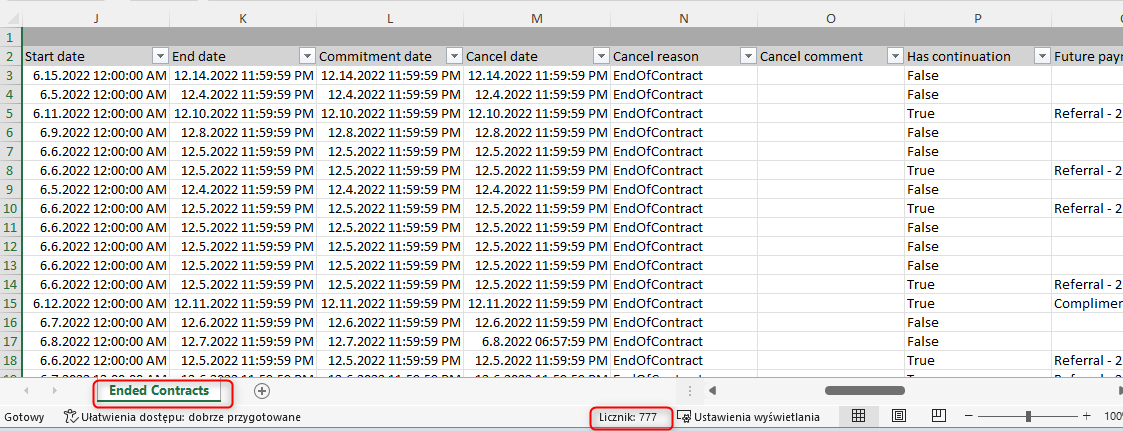 Now, let's verify if the number of new contracts in the report also matches the figure in the widget. The same report can be used for this purpose, but with slightly amended configuration.